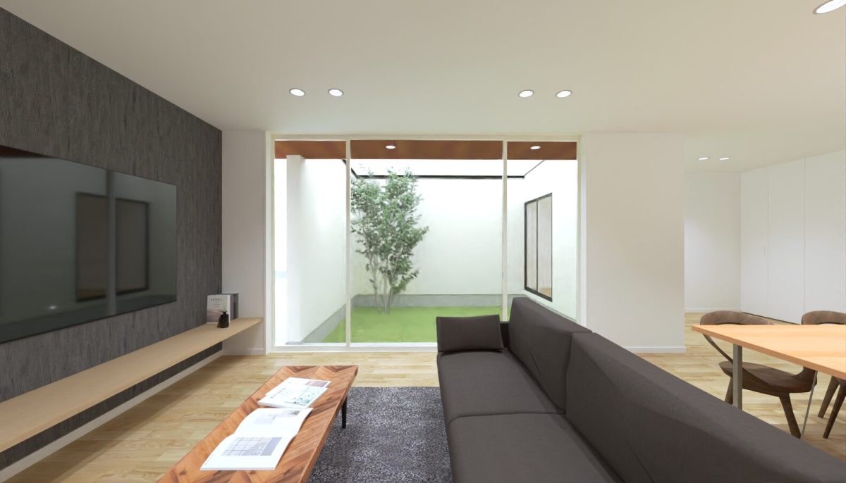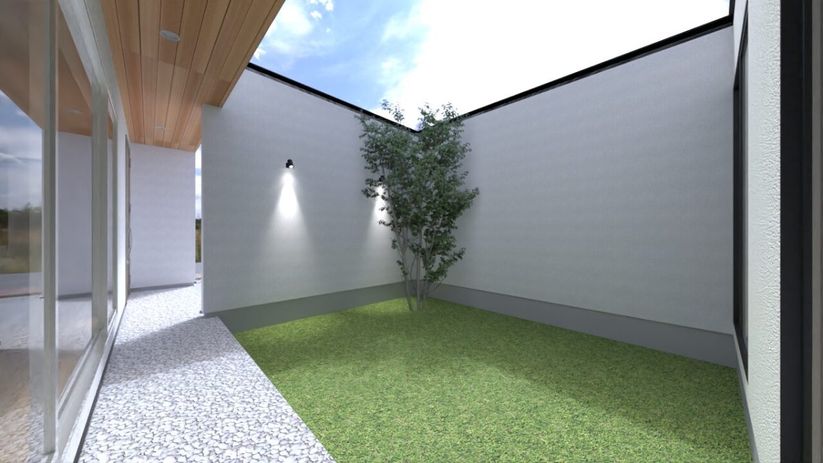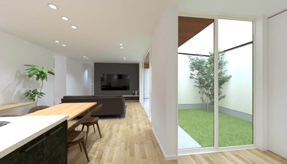 周りを気にせずに建物の内外共に安心して暮らせる、開放的で明るい住まいの設計を目指す。